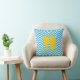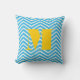 Bright Aqua Ivory and Gray Monogram Zig Zag Throw Pillow
