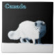 A digital painting of an Arctic Fox on a bright polar night. Text reading, "Canada" also appears in electric blue.