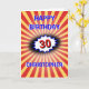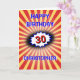 The background for this eye-catching birthday card is an explosion in deep red and yellow, with a blue-edged burst to emphasise the number. There is a vintage comic retro vibe to the design with crisp bright colors and images. Edit the Happy Birthday greeting, edit the number, change the name, and personalize the message inside as well.