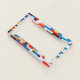 A combination of black, white, red, blue and yellow arranged in different length blocks.