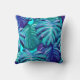 Bright Blue and Green Palm Tree Leaf Throw Pillow