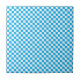 This design features a bright blue checkerboard. It is set on a white background.