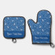 Bright Blue and Winter White Birds Floral Pattern Oven Mitt & Pot Holder Set