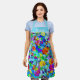 Bright blue floral personalized apron