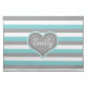 Bright Blue Grey White Stripes & Heart Cloth Placemat
