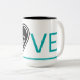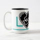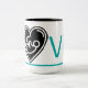 Bright blue love, black heart with baby, Two-Tone coffee mug