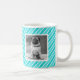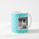Cute personalized photo mug with a trendy bright blue and white stripe pattern background. Add your own personal touch to a mug by adding photos of your kids, pets, and other family members.