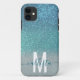 Bright Blue Teal Sparkly Glitter Ombre Monogram Case-Mate iPhone Case