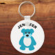 Create a fun small gift with a personalized touch or use this key chain as a party favor for teddy bear themed parties. The keychain features a cute illustration of a furry teddy bear in bright turquoise blue and is ready to be personalized with a name or other text in bold black lettering.