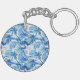 Bright Blue Tropical Watercolor Pattern Keychain