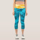 Bright Blue Yellow Camo Designer Initials Capri Leggings