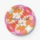Bright Boho Plates feature an abstract design in shades of pink, strawberry, and orange, on a white background. Wording is violet script, which is fully customizable. You can use these plates at receptions, rehearsal dinners, engagement parties, anniversaries, and other festive occasions. Designed to coordinate with other bright Boho wedding items.