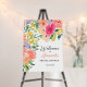 Bright bold boho garden floral bridal shower welcome board, featuring hand painted peach roses, red flowers watercolor, green eucalyptus and greenery and other cute pretty garden flowers with a modern script font brush. A burst of bold colors and pretty blooms!