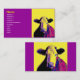 extremely bright pop art style cow business card template in neon yellow and bright purple, trendy contemporary origintal design, digital painting copyright Ann Powell all rights reserved.