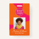 A fun employee badge with photo and your company logo in cheerful colors of hot pink and orange in a modern abstract pattern. It's a perfect choice for so many professions. Whether you run a fashion boutique or salon, a day care center or school program, or operate in a creative field, this badge is a winner! Personalize with your business logo, the employee's photo, and their name and job title. The back of the badge has a text template for including other info as well as a QR code to include your company URL.