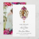 This festive and elegant, 5x7 inch, wedding Save the Date card will appeal to brides and grooms who like bright pops of gorgeous color. It features a painting of the marriage of the Virgin Mary and St. Joseph embellished with an ornate gold frame and watercolor flowers in beautiful shades of magenta and fuchsia with accents of teal leaves. The card also includes your wedding details set in a classic serif font accented by a swirly calligraphy script font. The reverse side provides room for an engagement photo and is embellished with the same floral elements as the front. To reposition elements or change fonts and text colors in this design, scroll down past the text template boxes and click "Edit with design tool". Designed as part of my classic Alannah wedding collection. Be sure to browse the other items to create a sophisticated, coordinated look for your special day and the surrounding events. If you need assistance customizing this invitation, please contact me through the Zazzle messaging tool or at admin@albamarie.com. I'd be happy to help!