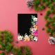 Elegant bright and bold modern spring summer flowers illustration with pretty oversized wild flower and brush script sweet 16 birthday party invitation with a modern calligraphy typography with bright neon pink, orange, green and yellow flowers with real gold foil on an editable black background.