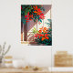 A vibrant and serene botanical illustration featuring lush tropical plants and red-orange leaves bathed in warm sunlight. The soft shadows and modern entrance background create a calm, summery atmosphere. Perfect for lovers of nature-inspired art, minimal tropical design, and cozy home decor.
