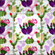Chic fabric with bright botanical pattern. Flowering cactuses pen illustration.