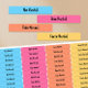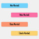 Kids waterproof labels which you can personalize with your childs name(s) - up to 4 different names - color coded for boys and girls in bright saturated pastel shades of blue pink orange and yellow. Simple, clean design with easy to read handwritten style typography, ready to label your back to school supplies, lunch box stickers etc.