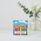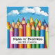 A bunch of bright colored crayons with a blue sky and cloud overhead. All text is easily customizable.