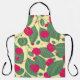 Great color and even though I ordered the kid size, it covers well enough to use during the holidays. I am not a big woman and prefer a shorter apron. I stand 5"6" and the length of the garment goes to mid-thigh. The tie straps fit well at my waist and even though there is no neck strap adjustment, the opening is plenty big enough. I am happy with the size and fit. I am sharing my apron with my 10 year old grandson, too! The color is vibrant and looks good, as shown on the website. The stitching looks strong and reinforced. Photographed is front side and back side of the apron, reinforced straps and coloring. My phone camera may not be the best at showing the details.