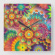 Bright Colorful Abstract Flower Pattern Square Wall Clock