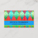 A colorful artistic business card featuring an abstract geometrical design. On the back is space for your custom photo (optional) as well as social media icons. This eye catching business card is great for anyone working with children or looking for a different style.