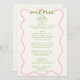 A unique retro mint green modern handwritten wedding dinner menu. Which features chic template design of boho vintage milky background and green hand written text layout and pink wavy hand drawn frame border. Perfect and matching with the whole suite.