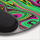 The plastic backing is nice and sturdy. The grippy pads underneath keep the mouse pad where I put it on my table. The pad the mouse sits on is cut well to fit the backing. The wrist pad is perfectly soft, supportive, and thick. I'm left-handed, and this mouse pad works just as well for me as it does for my right-handed friends. I'm the designer of HippieClecticHope products. I'm blown away by how well my intricate fractals turn out on the tangible items in the Zazzle Marketplace. This particular mouse pad ***appears*** like a 3D object... A mathematically-engineered rainbow black opal, inlaid under transparent fabric...