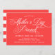 A beautifully elegant and feminine Mother's Day Brunch invitation in bright coral with lovely calligraphy text accents and white text. The reverse side of the invitation has a matching coral and white stripes pattern. Personalize with your event details.