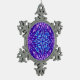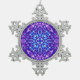 Seamless winter pattern with neon snowflakes. Bright crystal ornament. Festive texture with icy mandalas on a blue background. Pattern with purple and blue snow decoration.