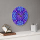 Seamless winter pattern with neon snowflakes. Bright crystal ornament. Festive texture with icy mandalas on a blue background. Pattern with purple and blue snow decoration.