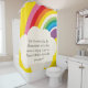A bright yellow background with a cloud and rainbow with stripes of pink, red, orange, yellow, white, green, blue, and purple with an area on the cloud that you can personalize with a phrase, quote, or saying of your choice or leave blank.