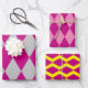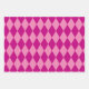 My original designed artwork is featured on this pretty wrapping craft paper, consisting of magenta pink diamond shapes, with each of the three sheets on a different background of gray, pink and bright yellow and in different sized diamonds for a fun and retro style. This is a set of three sheets of matte finish wrapping paper printed on heavy weight paper with grid lines on the back. Great to use for crafts and scrapbooking! This one-of-a-kind gift wrap and craft paper will make your gifts and projects stand out. These can be used for any holidays or gift occasion.