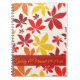 Customize the natural Bright Fall Leaves Wedding Spiral Notebook with the personal names of the bride and groom and date to create a unique planner, advice book or guest book for a seasonal Autumn September, October or November marriage ceremony. This classy customized autumnal wedding note book features red, orange and yellow scattered fall leaves with a white background.