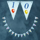 This flag shaped bunting Happy Birthday banner is light blue with dark blue letters with bright festive balloons in multiple colors of red, yellow, blue, pink and green. Customize the birthday year with the templates.