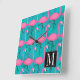 Bright Flamingo Pattern | Add Your Initial Square Wall Clock