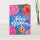 Beautiful hand painted wildflowers, pink and deep orange flowers on a electric blue background. Original artwork by Caroline Bonne Müller