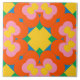 Add a splash of color and character to your décor with this radiant 6" x 6" ceramic tile designed by Ipsita Roy. Featuring large stylized floral motifs in vibrant orange, pink, yellow, and green, this symmetrical pattern bursts with joy and energy. Inspired by retro and folk styles, this bold geometric design is a delightful addition to eclectic, bohemian, or maximalist spaces.
