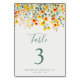 Bright Floral Wedding Table Number