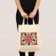 The printing came out very well, better than I had anticipated. The natural color fabric is sturdy with strong seams and comfortable handles. This tote fits easily over my shoulder. As it is filled, the bottom flattens out--very cool! I would buy this product again. This grocery tote holds a lot of groceries! The image quality was very good. The colors were a little darker than I had expected. The darkness may have been due to printing on a natural color fabric rather than on white. The cat design is attractively centered on the tote. The spirit of the design is very lively, just as it appears on the Zazzle website.
