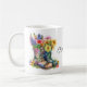 This watercolor style image of flowers growing in boots is a cheerful image for your morning cup of coffee. Or afternoon cup of tea. Or a cup of hot chocolate by the fire in the evening. Name on the mug can be changed. AI assisted graphic purchased with commercial use. Artwork: MokoDE
