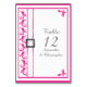 Pretty chic elegant modern bright dark fuchsia pink and white filigree lace vintage damask pattern with white faux satin ribbon and silver buckle. This is a colorful contemporary stylish classic wedding or special occasion table number on a custom background. Customize to choose your background from a range of custom colors to match with your coordinated wedding stationery suite and other bridal stationery essentials, easily personalized with your text to the templates to create your own unique professional luxurious simple plain and minimalist lacy design for your special marriage or other occasions or celebrations. Visit the PERSONALIZED _WEDDINGS STORE for matching products.