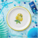 Fun design featuring a cluster of lush yellow lemons with bright green leaves. The plates have a sunny yellow outline around the edge. Put these with the matching paper napkins for a stylish setting for your guests.