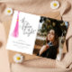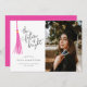 Modern and whimsical graduation photo announcement card featuring an illustration of a pink tassel with a hand written typography text that says "the future is bright."