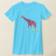 A realistic giraffe except with bright colors. Navy blue, hot pink, and bright orange.