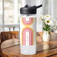 Bright Girly Rainbow Stripes Pattern with Name Water Bottle