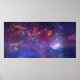 A colorful and luminous photograph of a galaxy. A combination of bright colors and ethereal plasma formations make this beautiful outer space photo a pleasure to behold. A mixture of vivid purples blues orange and red all swirling and mixing together with some glowing accents scattered around creates a wonderful abstract image.