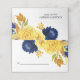 Here's a pretty folded wedding place card that features watercolor flowers and foliage in navy blue and yellow gold, with touches of light blue and green. Your custom text is in dark blue. The second side has the same floral image, with two more text fields for you to customize. The back of the card is solid matching dark blue. This card matches wedding invitations and other wedding products in our store, and uses artwork from LABFcreations.